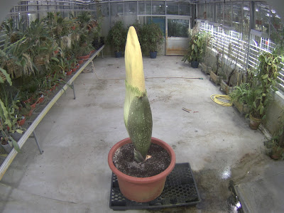 Interestingly, the popular name titan arum was invented by David Attenborough when he famously filmed the plant for his 'The Private Life of Plants' BBC series. Apparently, he felt that continually referring to the plant by its Latin name on TV would be inappropriate. See video at the end of this post.